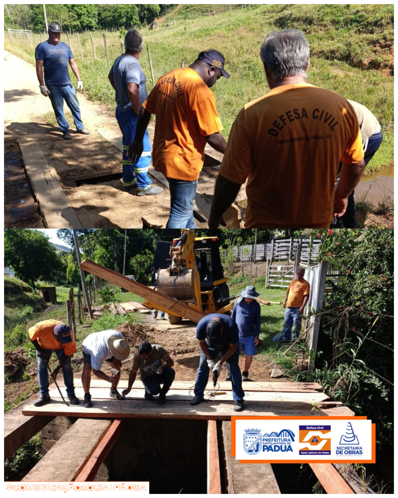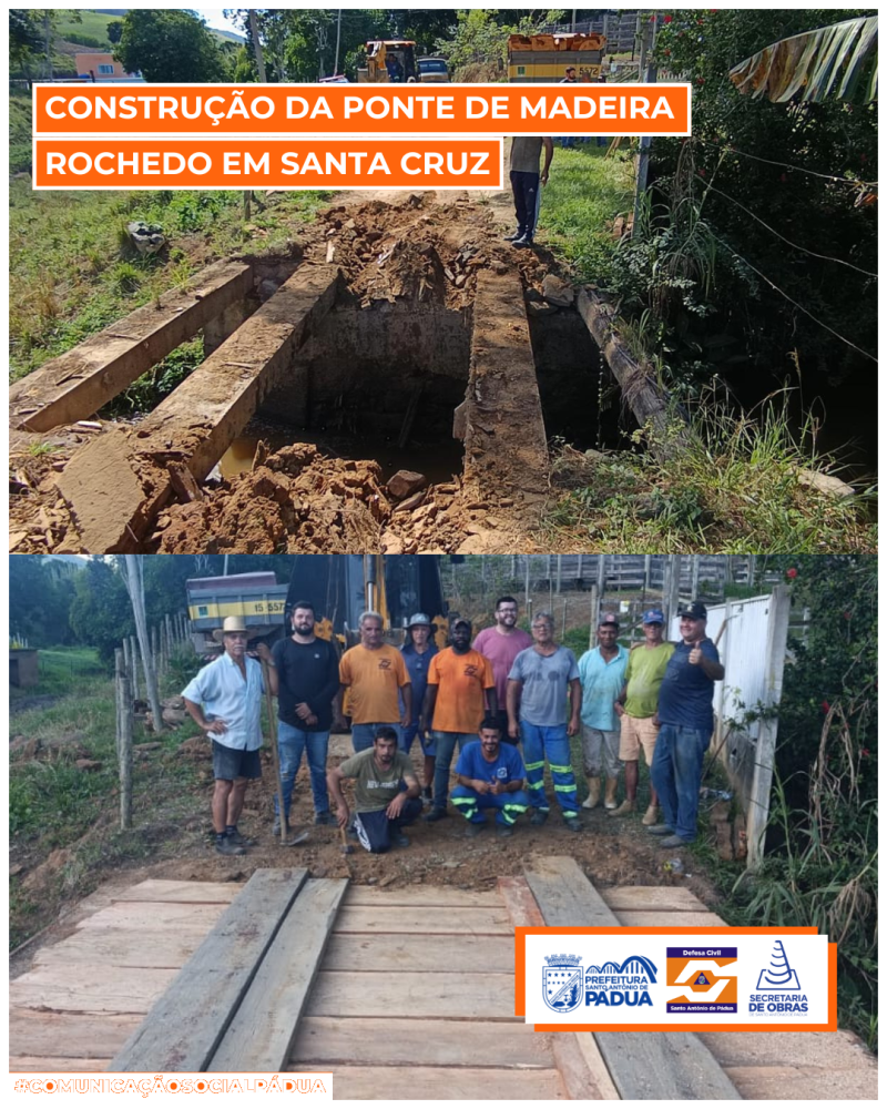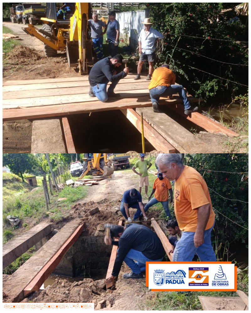 A Secretaria Municipal de Defesa Civil e Secretaria de Obras e Infraestrutura de Pádua concluíram a recuperação e construção da ponte na estrada vicinal no distrito de Santa Cruz.